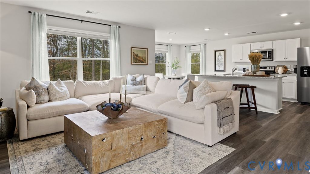 Welcome to Chappell Creek in Prince George, VA! This established community offers spacious homesites, open floorplans, and a family-friendly atmosphere just minutes from Fort Lee, Petersburg, and Richmond. Welcome to The Pine, a stunning 1,953 sq ft open-concept home that perfectly blends comfort and functionality. This beautifully designed home features four spacious bedrooms, two and a half bathrooms, and a two-car garage, offering ample space for your family to grow and thrive. As you enter, you'll be greeted by a welcoming foyer with a convenient powder room and coat closet. The open floor plan allows for seamless flow between the living room, casual dining area, and kitchen, creating the ideal space for family gatherings and entertaining. The spacious kitchen is a highlight, with a large island offering plenty of seating, an impressive corner pantry, and stainless steel appliances. It overlooks the living and dining areas, and a sliding glass door provides easy access to the backyard. Upstairs, the owner's suite offers a private bath with a double bowl vanity and two oversized walk-in closets, creating a luxurious retreat. The three additional bedrooms are generously sized, providing ample privacy, and share access to the second full bathroom. The laundry room is conveniently located on the second floor, along with an extra hallway closet that could serve as additional storage or a linen closet. This home is situated on expansive 1.8 acre lot!