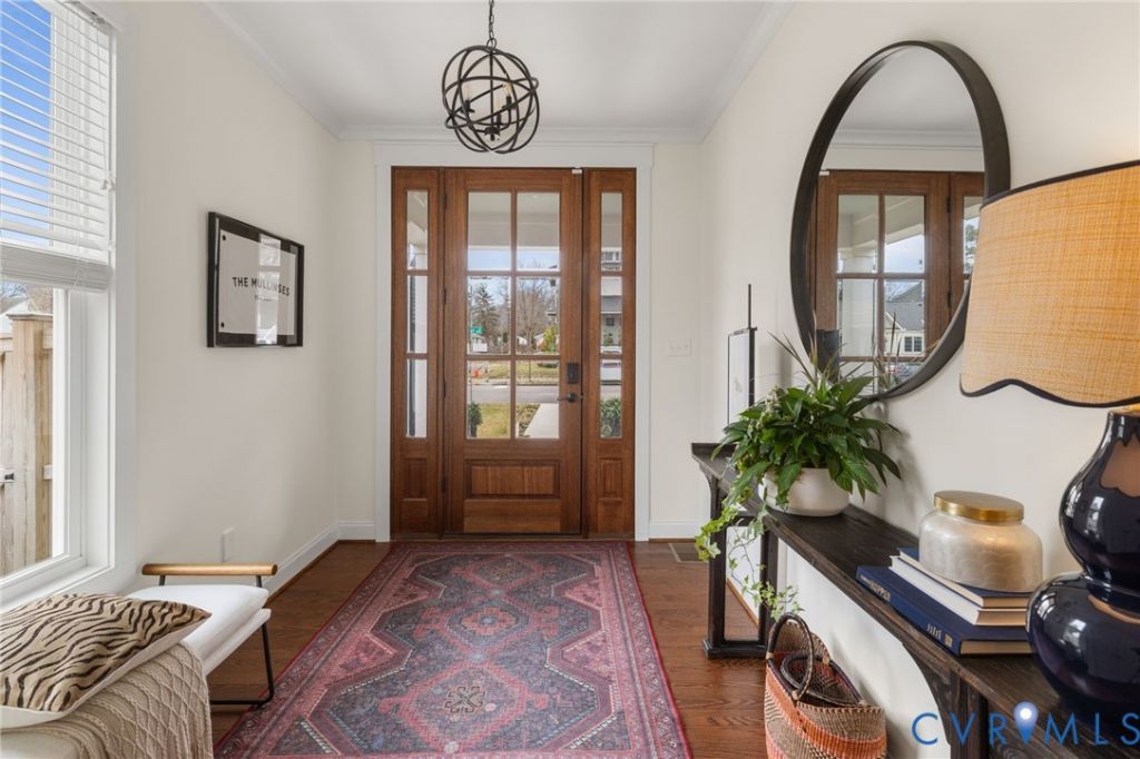 Custom crafted in 2023, this exceptional two and a half story Craftsman offers 3,473 square feet of thoughtfully designed living space. A welcoming foyer introduces a bright, open floor plan filled with refined architectural details, including a coffered ceiling and gas fireplace anchoring the spacious family room. The chef's kitchen is both stunning and functional, featuring crisp white cabinetry, quartz countertops, double ovens, a generous pantry, and premium appliances. With five bedrooms and four-and-a-half baths, the home offers remarkable flexibility. Two luxurious primary suites, one on the first floor with a laundry and one on the second floor. The second-floor primary retreat features a soaking tub, abundant closet space, and direct access to the laundry room for everyday convenience. The third floor offers a private fifth bedroom with bonus space perfect for an office. Outdoor living is equally impressive, with a covered rear porch overlooking a fenced backyard. A detached outbuilding ideal for a home gym or studio, plus valuable off-street parking. Move-in ready and impeccably designed, this home offers close proximity to the shops, restaurants, and cafes of Libbie & Grove and the very best of RVA living.